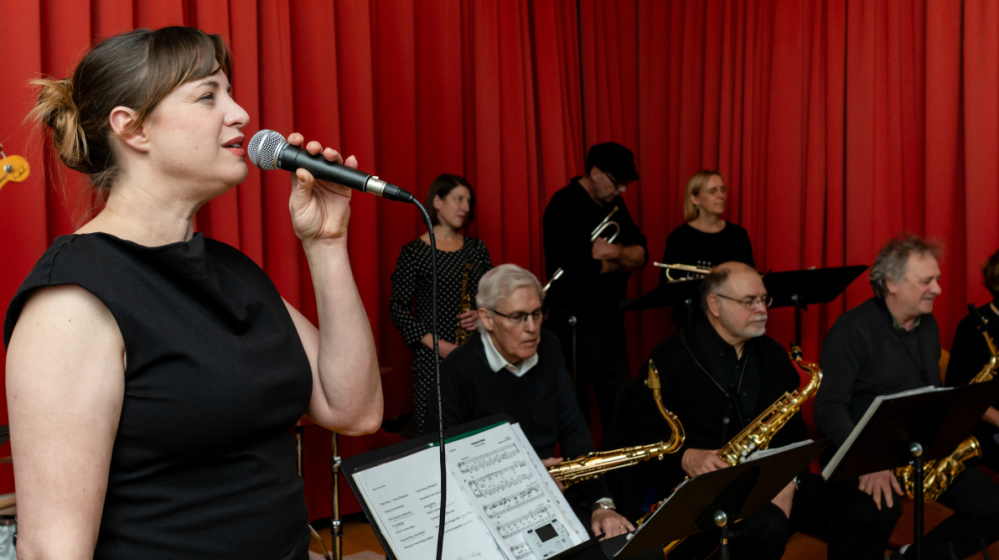 Rein instrumentale Stücke wie unter anderem "Take the A-Train" und der "C-Jam-Blues" von Duke Ellington sowie "Topsy" und "Jumpin at the woodside" von Count Basie standen ebenso auf dem Programm wie Arrangements mit Gesang von Comboleiter Hemmi Donié ("I'm walking, "Sweet home Chicago") und Jazzsängerin Svenja Hinzmann als Special Guest ("Summertime").